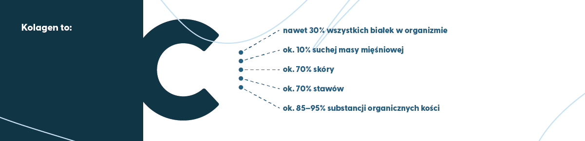 - w wieku 20 lat organizm wymienia ok. 3 kg kolagenu rocznie;