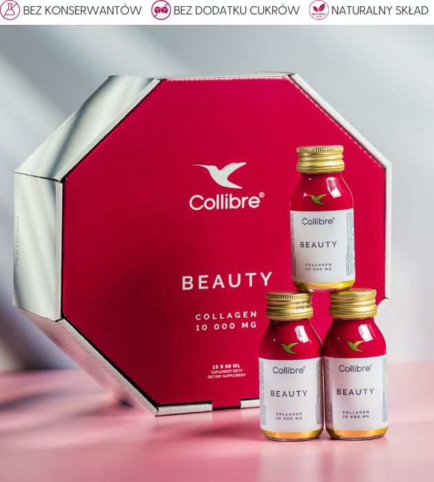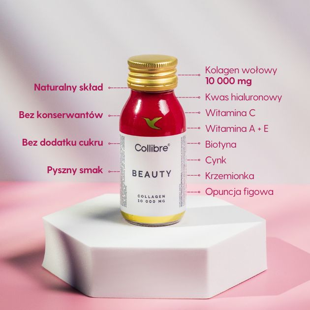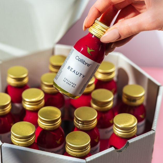 Kolagen Collibre® Beauty to suplement diety w formie shotu z kolagenem i witaminami dla osób, które chcą zadbać o kondycję swojej skóry, włosów i paznokci. Nasz kolagen w formie wygodnych shotów zawiera aż 10 000 mg hydrolizowanego kolagenu z dodatkiem antyoksydantów oraz witamin. Wysoki stopień hydrolizy wynoszący 2000 Da zapewnia najwyższą wchłanialność!