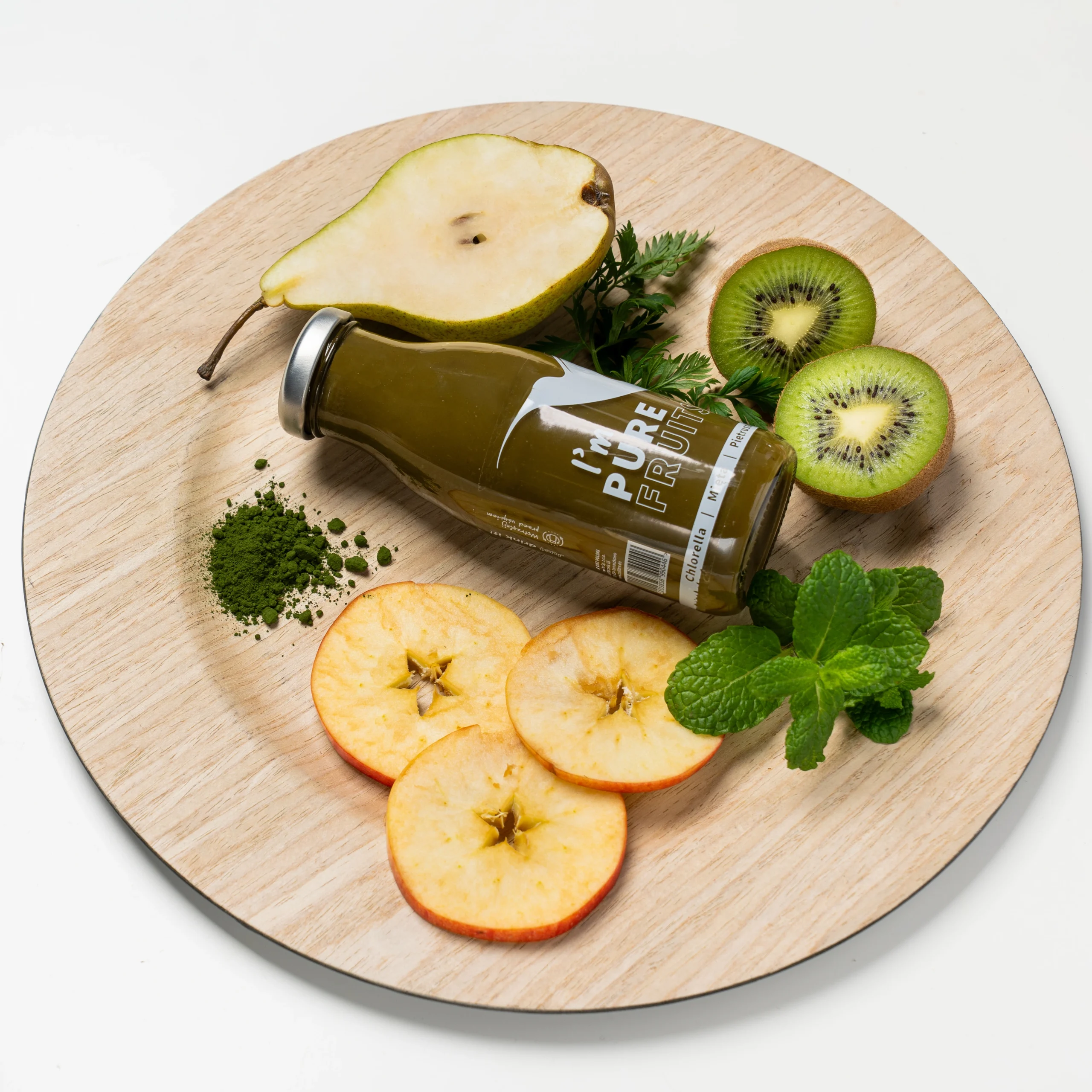 Sok PURE FRUITS z chlorellą, miętą i pietruszką