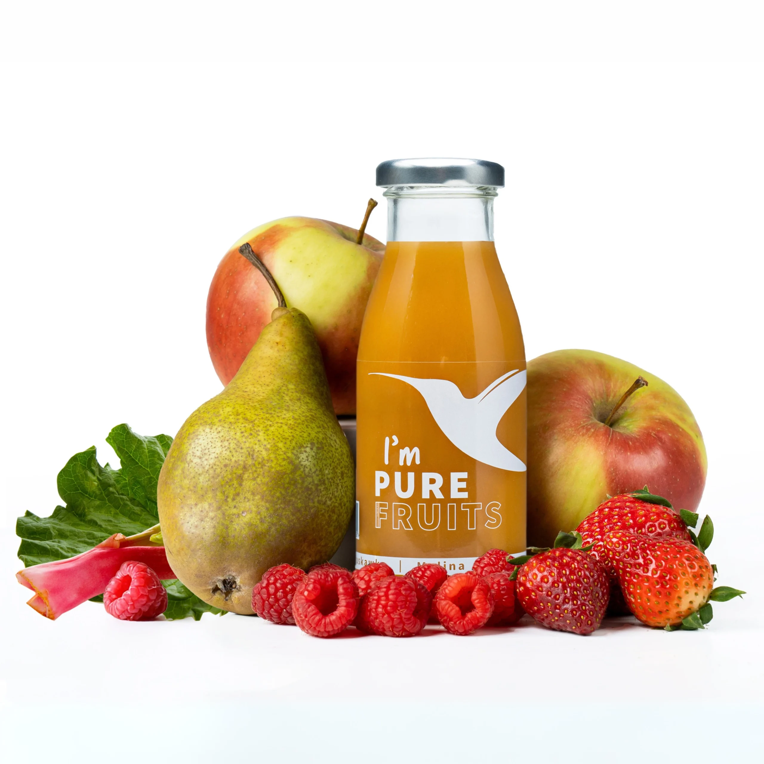 Sok PURE FRUITS z truskawką, maliną i rabarbarem